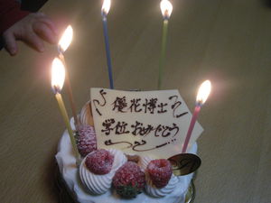 ささやかですが、ケーキでお祝いをしました。
