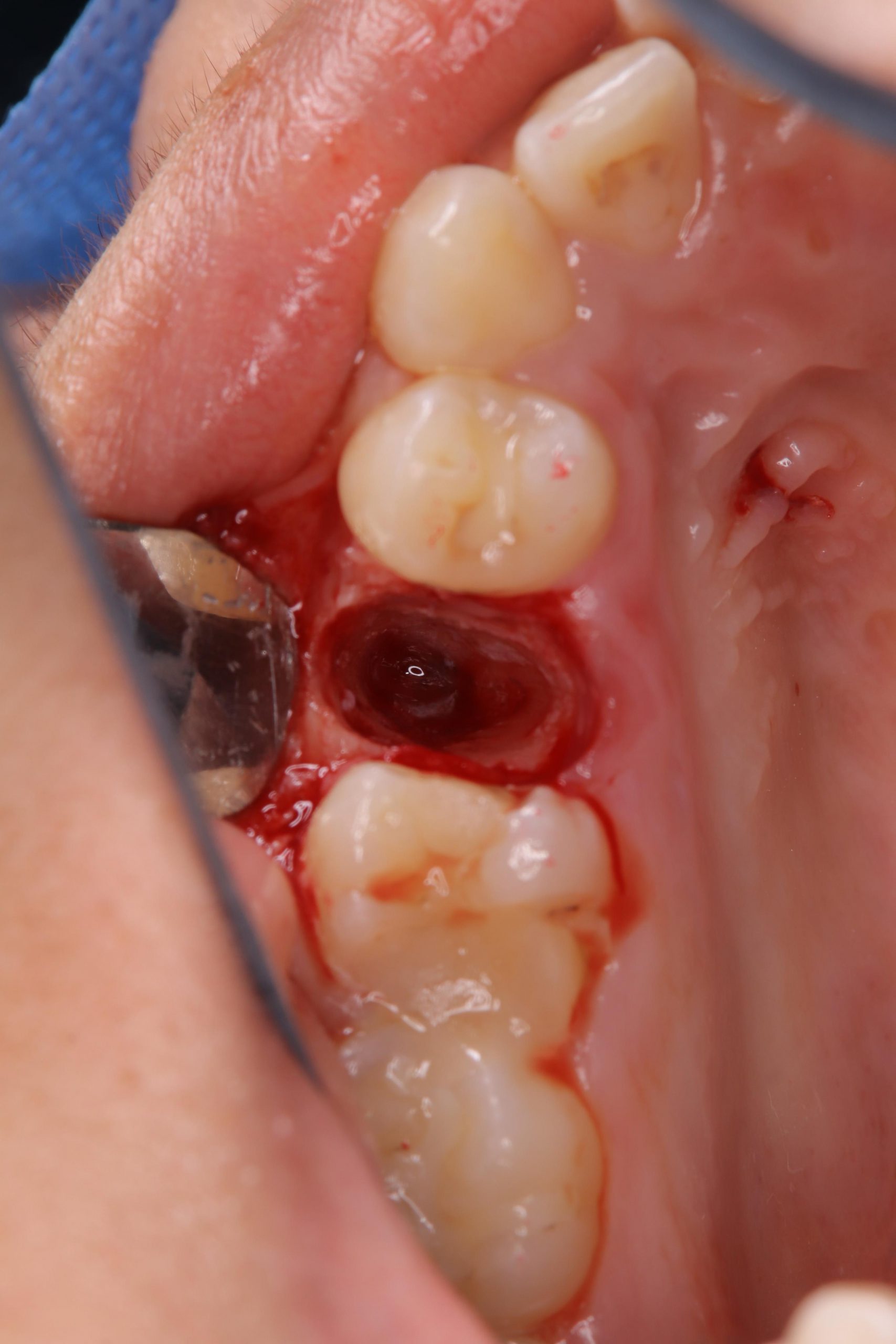 右上の第2小臼歯を抜歯し、ドナー歯である左上の過剰歯がソケットに収まるように骨の形態を調整し、
