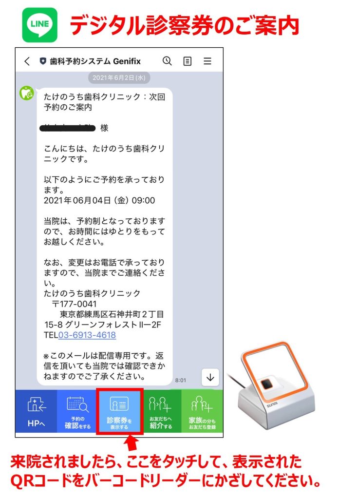 この度、たけのうち歯科クリニックのLINE公式アカウントにデジタル診察券の機能が加わりました。