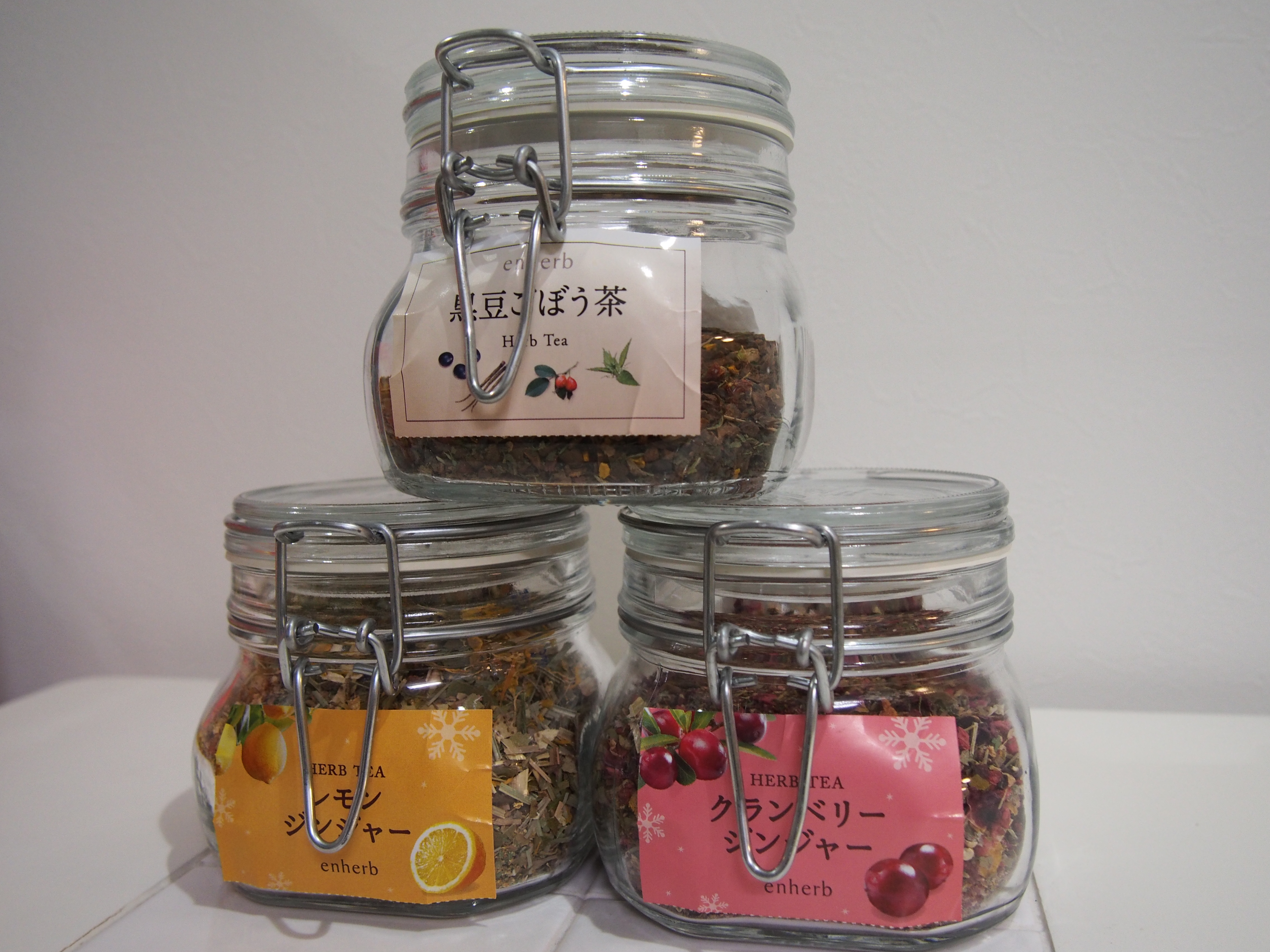 香ばしい黒豆ごぼう茶、甘酸っぱいクランベリージンジャー、シトラス風味のレモンジンジャーの